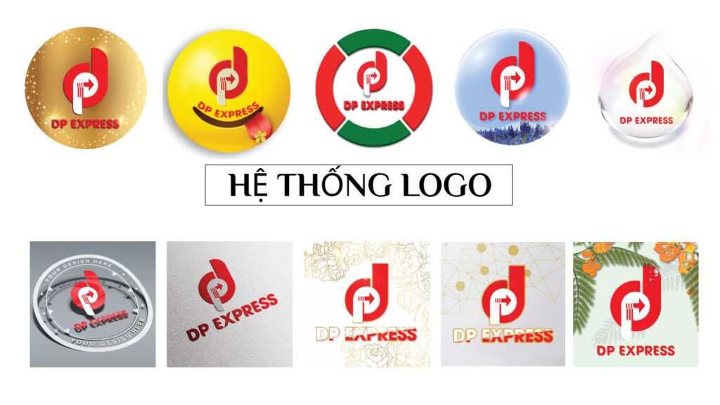 - Hệ thống logo DP EXPRESS được thể hiện bằng các cách trưng bày logo gốc khác nhau