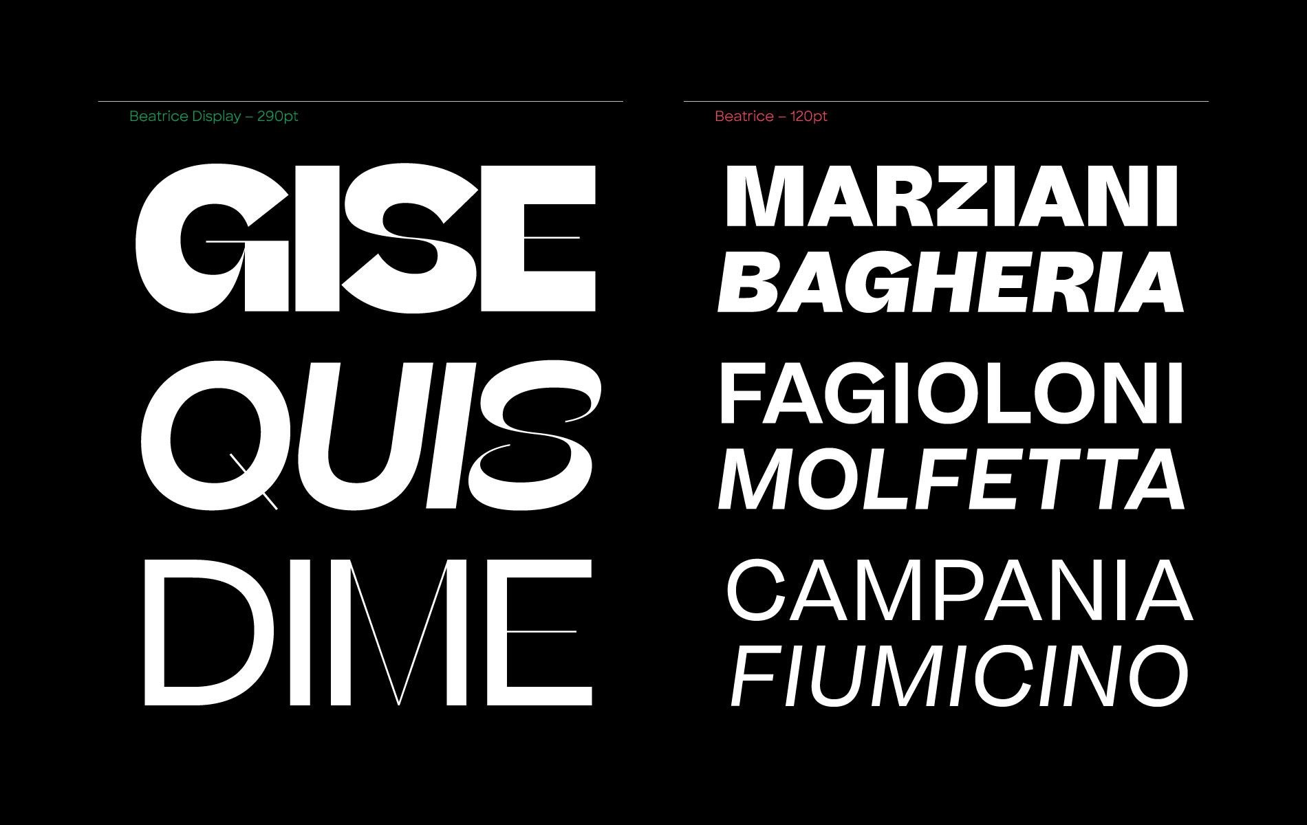 Beatrice là một kiểu chữ mới của New York foundry, Sharp Type. Họ chữ này là một khám phá về các phương pháp luận tương phản, kết hợp các khía cạnh khác nhau từ các hệ thống mở rộng góc nhìn, độ tương phản ngược và hành vi tương phản của các tấm lưới sans-serif tiêu chuẩn.