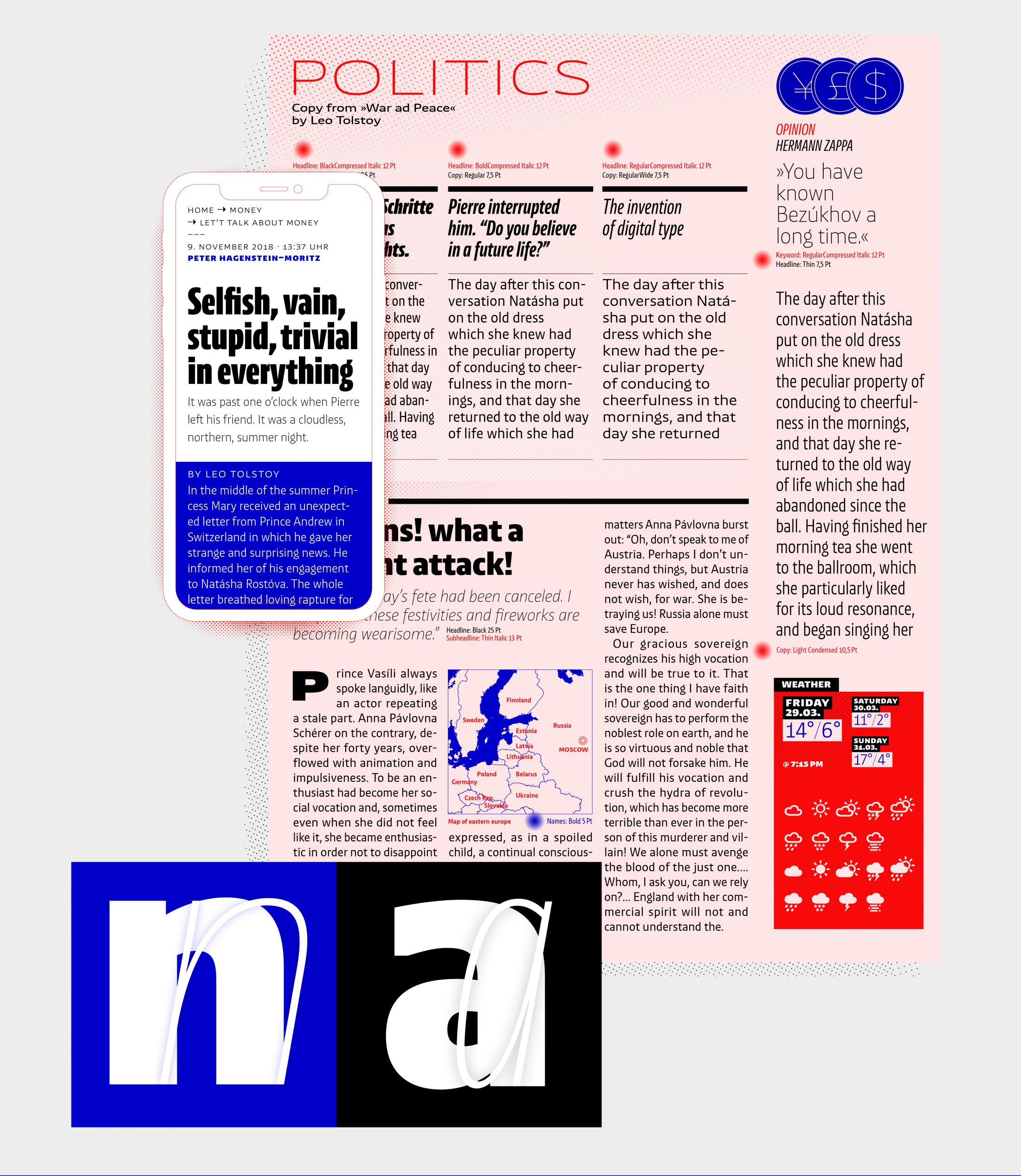 Được sáng tạo bởi Latinotype, đa dạng về lựa chọn. Lựa chọn nét mảnh phù hợp cho nội dung phần thân đoạn và lựa chọn nét đậm phù hợp cho phần tiêu đề. Đây có thể được xem là một lựa chọn thay thế trong các ý tưởng thiết kế đồ hoạ như logo và danh thiếp độc đáo